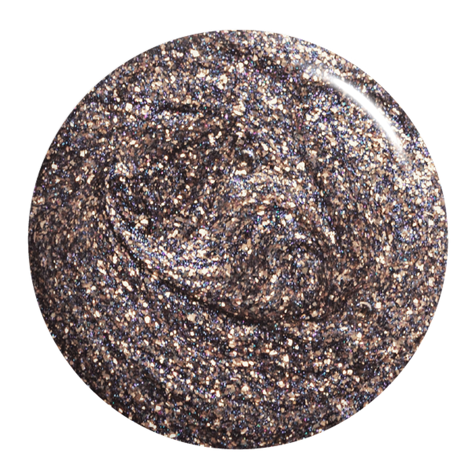 Gunmetal grey. Medium-dark. Frosted. Golden metallic finish. Warm undertone.