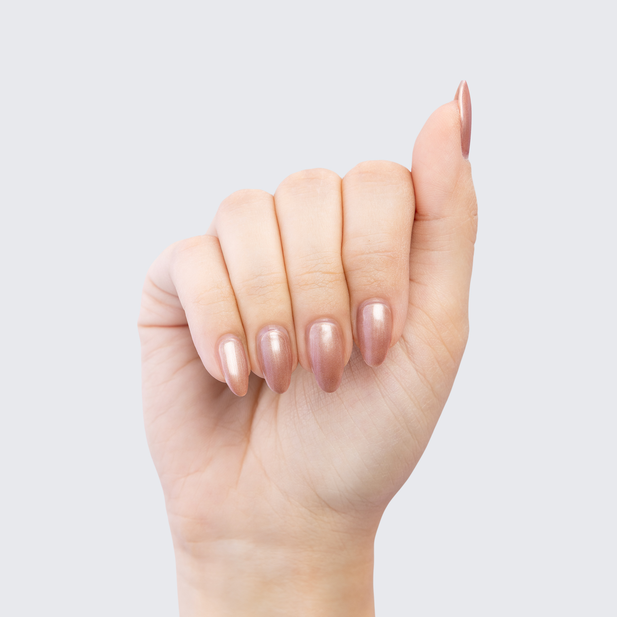 Rose gold. Light. Pearl finish. Opaque. Warm undertone.