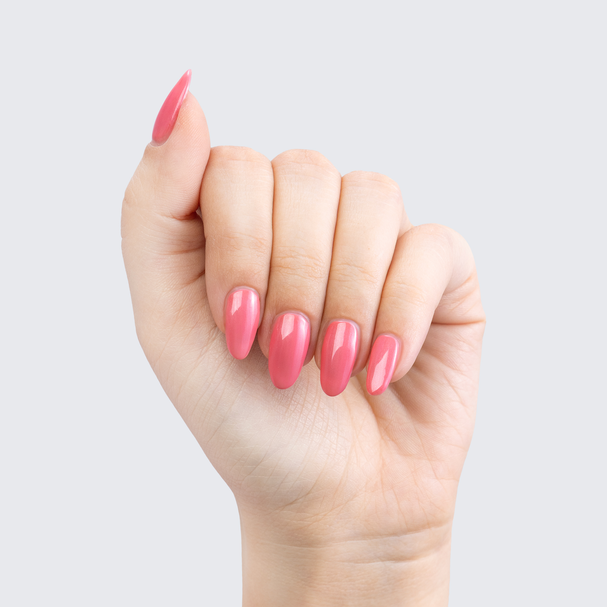 Coral pink. Light. Pearl finish. 1 coat sheer, 2+ coats opaque. Warm undertone.